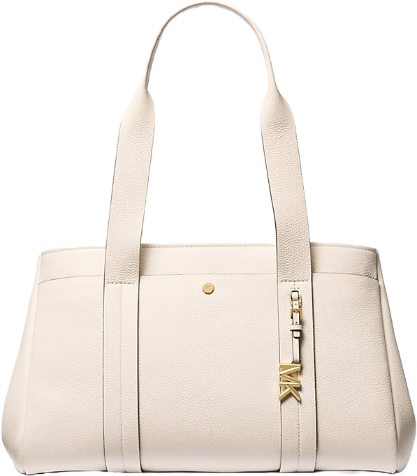 Nuestro bolso tote Romee es el complemento ideal para el día a día gracias a su amplio interior y su diseño atemporal. El aplique MK aporta una dosis de glamour a esta versión de lona con nuestro exclusivo estampado de logotipos, mientras que las resistentes tiras de cuero te permiten llevarlo cómodamente colgado al hombro. Es el porta todo perfecto tanto para los recados diarios como para las escapadas de fin de semana.