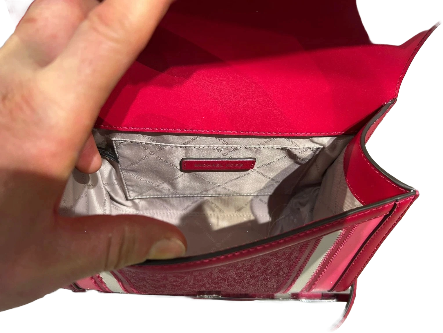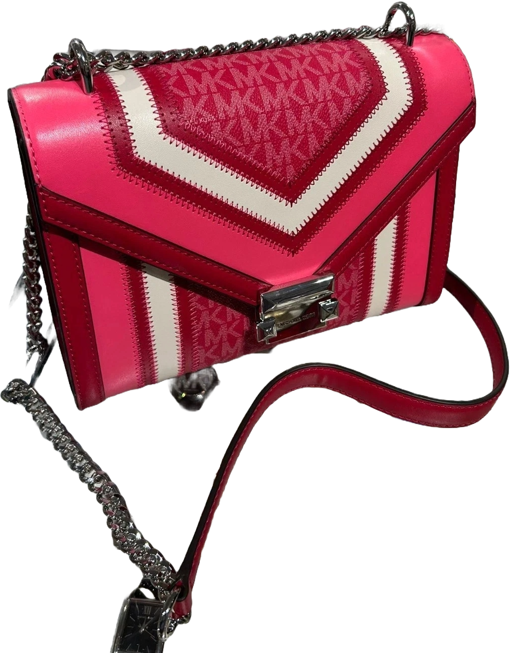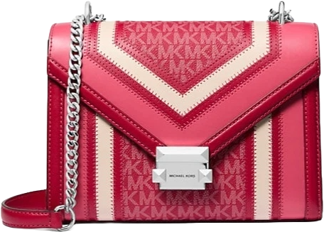 El bolso de hombro Michael Kors Whitney con logotipo de bloque de color mediano en frambuesa oscura Multi es un accesorio elegante y versátil para cualquier mujer. Con una forma rectangular y un tamaño mediano, este bolso de hombro cuenta con un bloqueo de empuje y cierre a presión, junto con un acento plateado de asa/correa. La bolsa viene con una correa desmontable, tarjeta de marca, encanto de bolsa y cerradura, lo que la hace perfecta para varias ocasiones, incluidos viajes, bodas, salidas informales y reuniones de negocios. Hecho de una combinación de lona con estampado de logotipo, lona, cuero y materiales exteriores de mezcla de poliuretano, este bolso de diseño también incluye bolsillos interiores y correas ajustables para mayor funcionalidad.